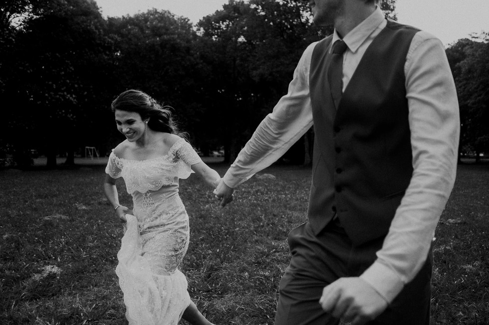 Los novios recuerdan que la fiesta concluyó justo cuando la tormenta prorrumpió con su mayor intensidad. Estábamos en el muelle tomando fotos, de repente el cielo se desgarró y terminó por deshacer definitivamente todo lo que estaba planificado. Sin embargo, porque dicen que lo mejor sucede cuando menos lo pensamos, aquel fue un momento inolvidable. Las últimas fotos, el vestido lleno de barro, los pies descalzos, el alma fresca, el tiempo imparable, la felicidad eterna.